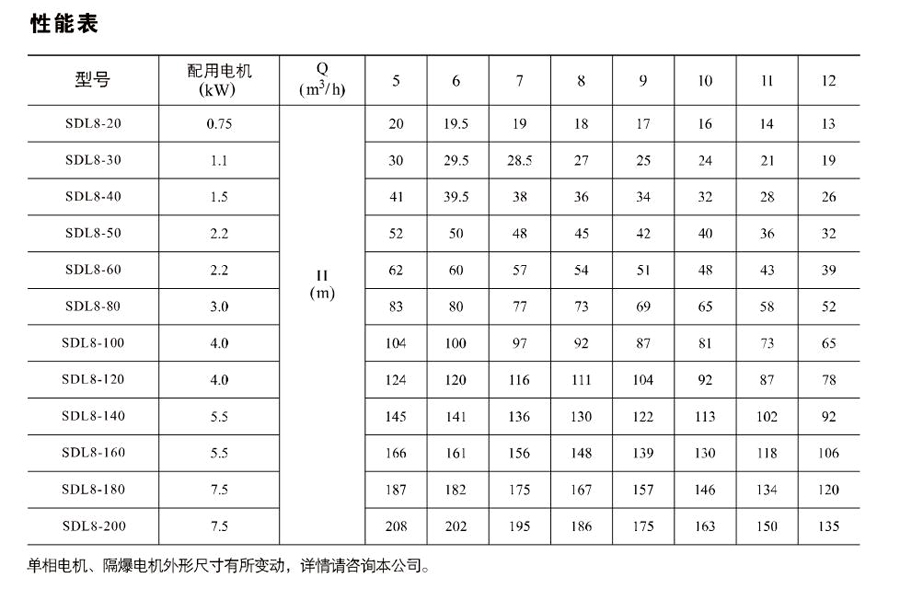 南元SDL8/SDLT8立式多級離心泵有不同的泵規格和不同級數,以滿足所需的流量和壓力。