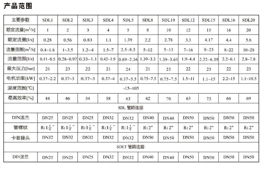 SDL2/SDLT2是一種多功能產品,可以輸送從自來水到工業(yè)液體的各種不同介質,適用于不同溫度、流量和壓力范圍。