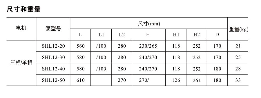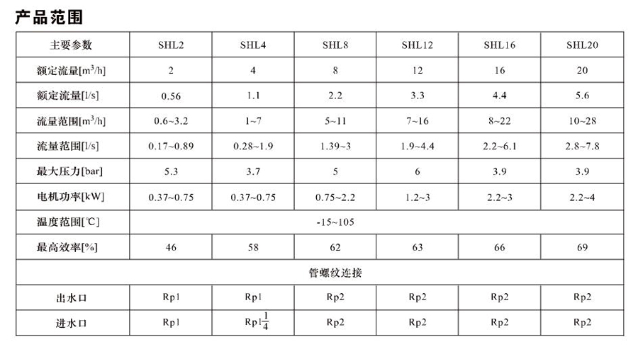SHL/SHF/SHFT12為臥式多級非自吸多級離心泵,配加長軸電機。緊湊式結構使泵尺寸很小,軸向入口或徑向出口。